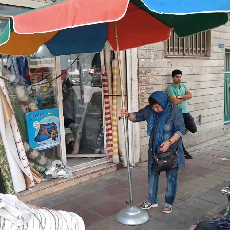 چتر سایبان از جنس برزنت و اسکلت آهنی بسیار محکم و پایه وسط که سایه آن بسیار خنک میباشد