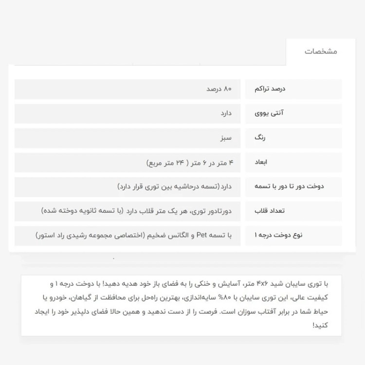 توری شید، 4در6، 80درصد، دوخت1 با قلاب