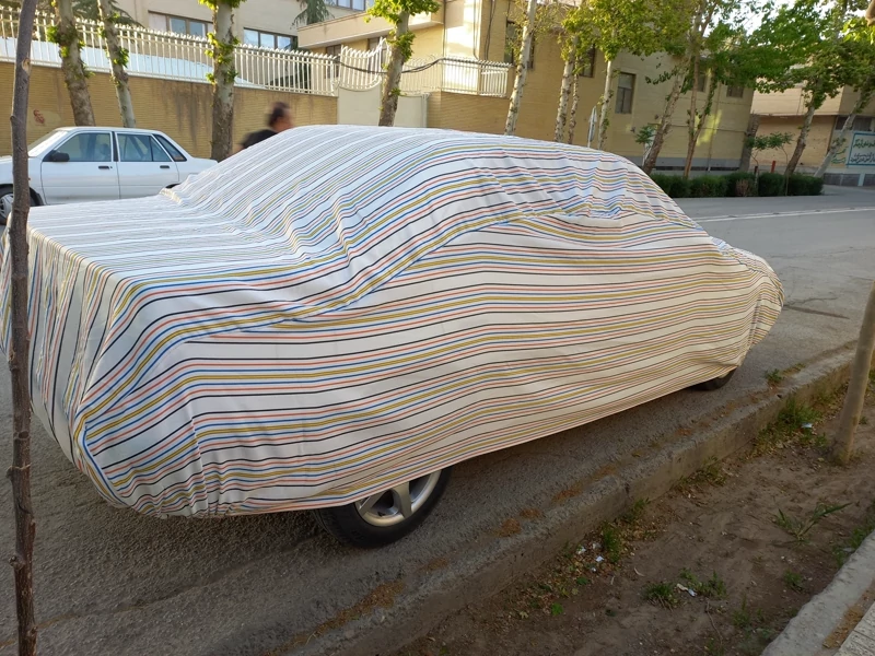 چادر ماشین برزنتی نخی مقاوم به آفتاب و داخل خزدار پنبه ای مناسب برای خودروهای رنگ مشکی و رنگهای متالیک خاص